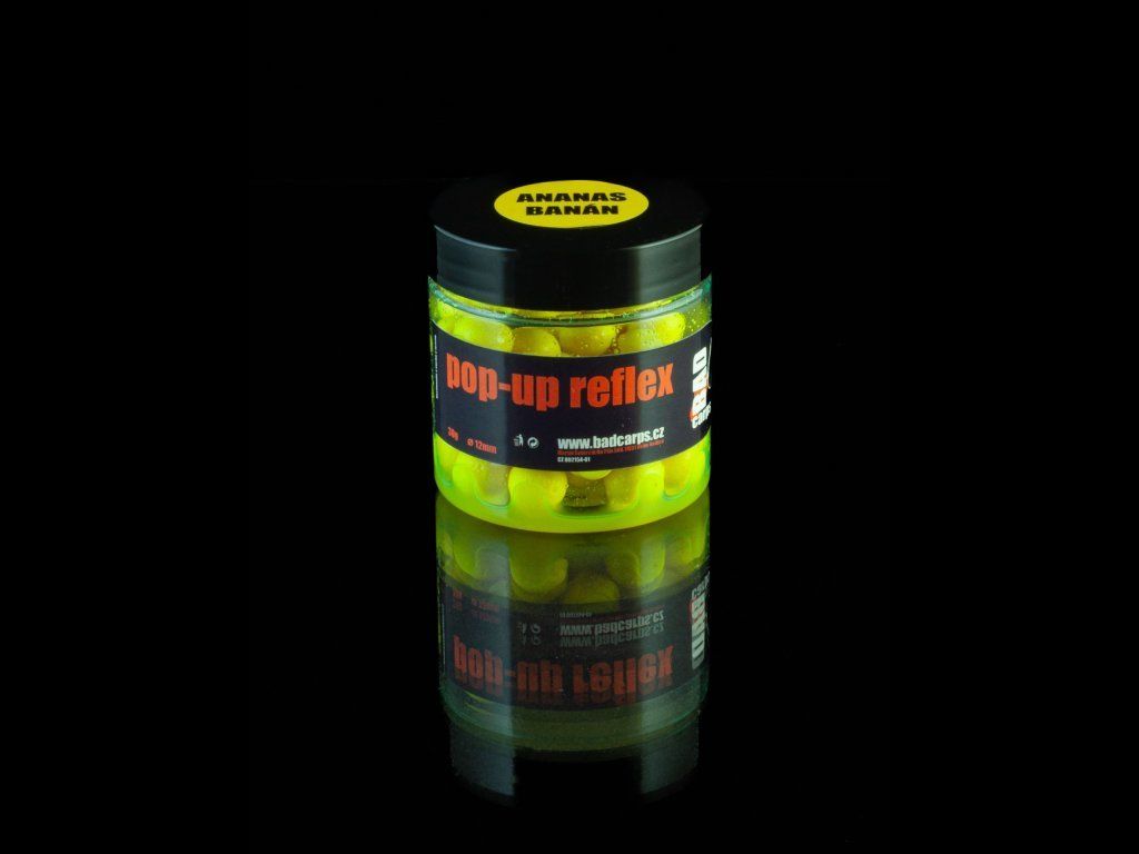 „Pop-up plovoucí nástrahy BadCarps Ananas-Banán v esenci – výrazně aromatické žlutobílé kuličky ve velikostech 9 mm a 12 mm. Sladká ovocná kombinace ananasu a banánu láká kapry i v chladnější vodě. Ideální pro lov na feeder i klasickou kaprařinu.“