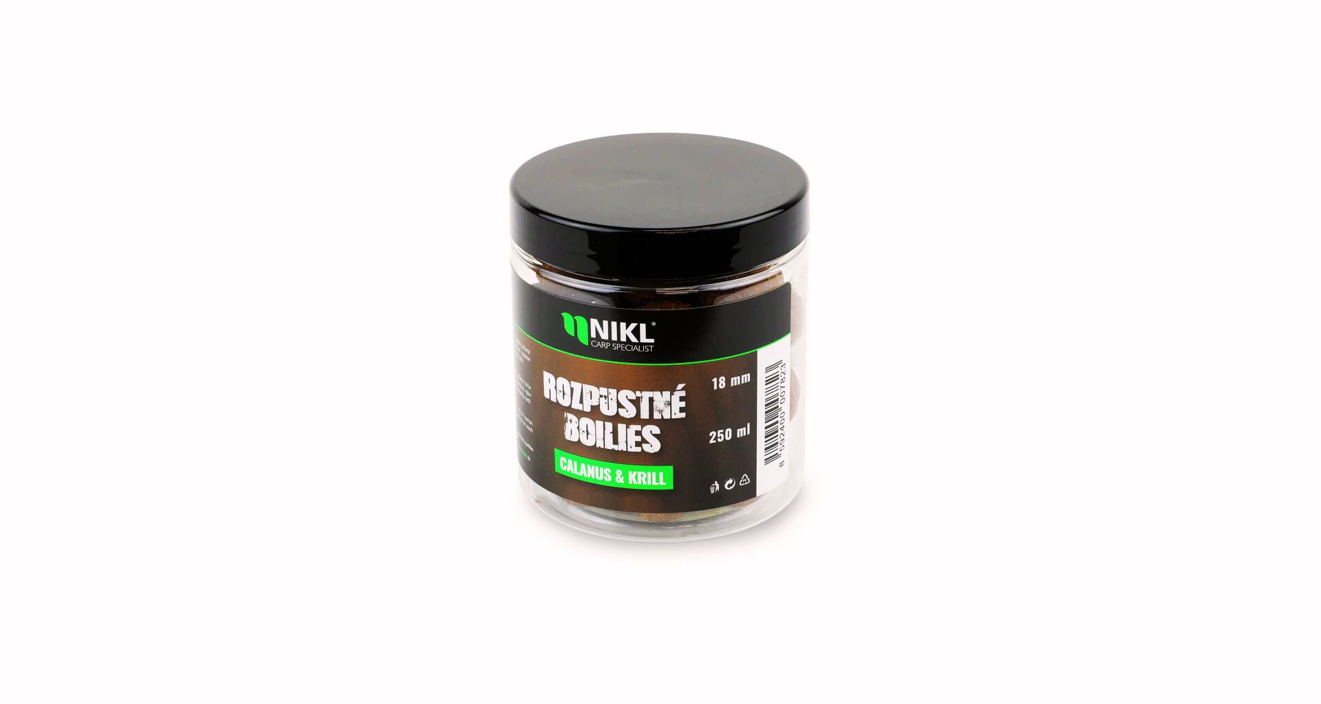 Nikl Rozpustné boilies Calanus & Krill je kulaté, rychle pracující boilies, které vychází z konceptu známých Attract Hookers. Vyznačuje se intenzivním korýším aroma a specifickou chutí drobných korýšů, doplněnou o krillovou složku, která vytváří mimořádně silný potravní signál. Tato příchuť je účinná na aktivní ryby i na opatrné jedince, protože působí výrazně, ale zároveň přirozeně, takže kapry neodrazuje ani na tlakových vodách.