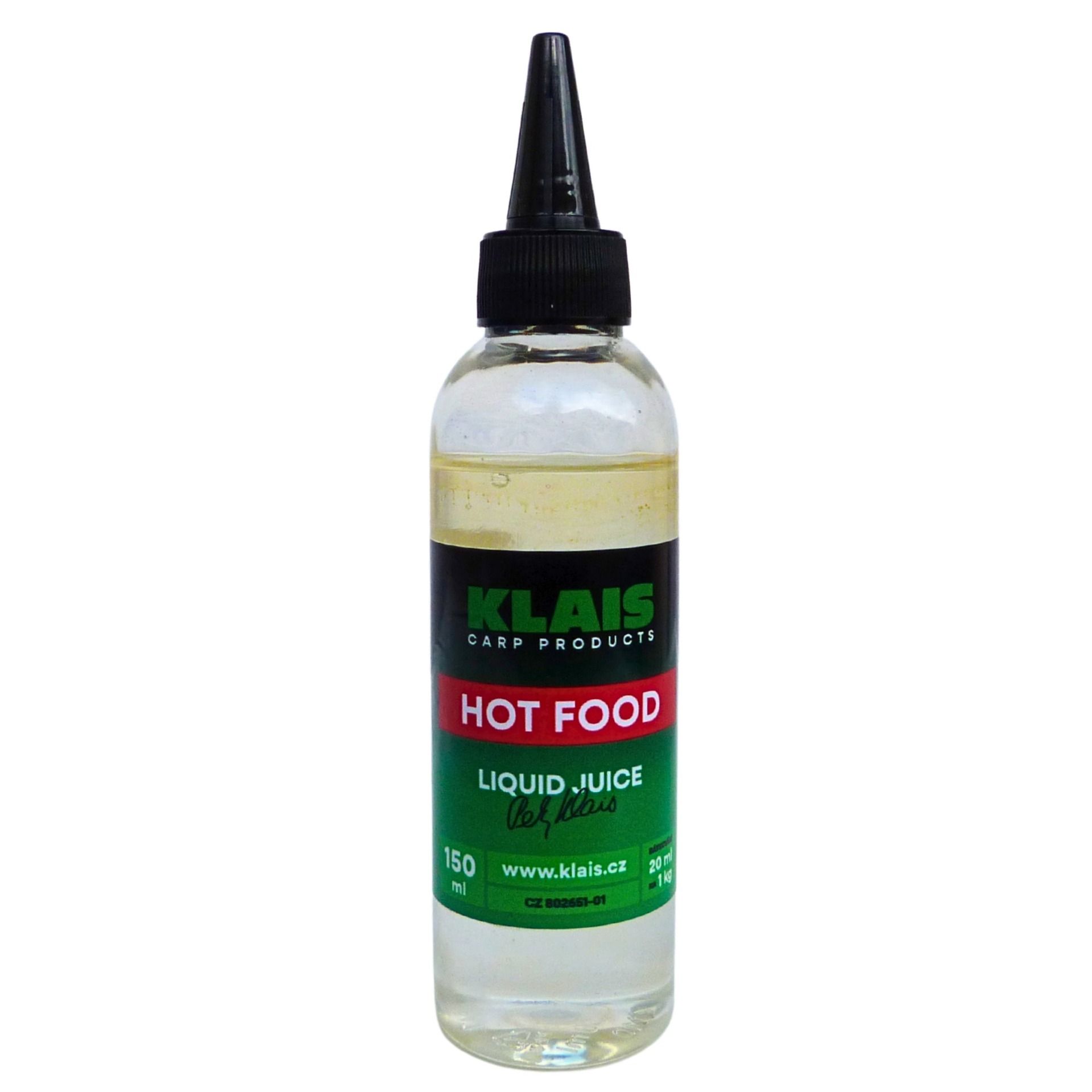 Klais Liquid Juice Hot Food 150 ml je vysoce účinný tekutý atraktor na ryby s výrazným kořeněným „hot food“ aroma. Ideální pro dipování nástrah i zatraktivnění krmení při lovu kaprů.