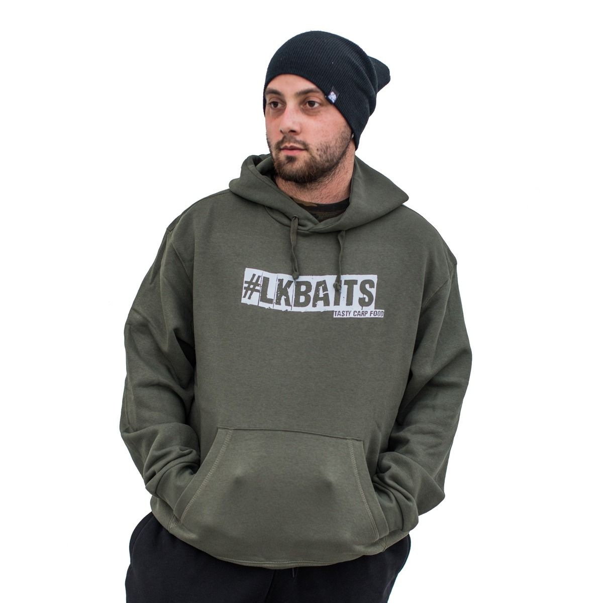 LK Baits mikina khaki 2019 potisk