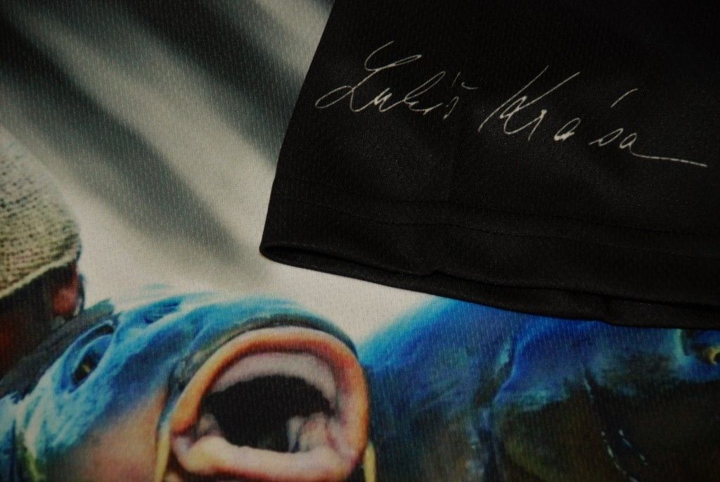 Moderní triko s novou tiskovou technologií, kde hlavním motivem je populární fotka Lukáše Krásy na celé zadní části, decentním podpisem na rukávu a hlavou kapra na přední levé části.