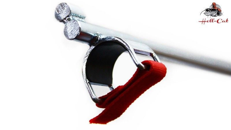 Uchycení prutu je řešeno spodním kruhovým držadlem, které je uvnitř opatřeno gumou, aby nepoškodilo prut a odtokovým kanálkem. Vrchní část je osazena zajištujícím nylonovým popruhem na suchý zip, který podrží prut, ale při záběru lze rychle rozepnout.