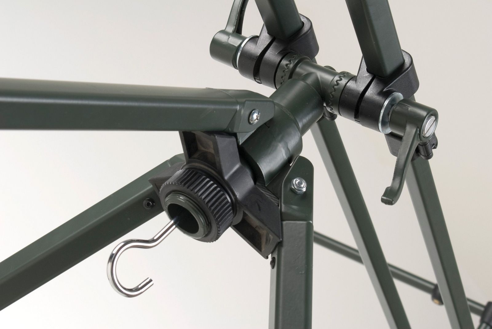 Nově vyvinutý velký tripod s extrémně pevným středovým uložením, prodlouženými nohami z tuhých profilů a zvětšeným rozpětím mezi hrazdami. Speciální systém naklápění a posouvání hlavních ramen umožňuje variabilní usazení prutů v různých situacích. Velkou výhodou tripodu jsou úplně nové multifunkční hrazdy s velkou šířkou. Jsou vhodné pro umístění tří nebo čtyř prutů s velkokapacitními navijáky. Materiál hrazdy i pevné sloupky zajišťují stabilitu prutů i v silném větru. Tripod je dodáván v luxusním, polstrovaném obalu.