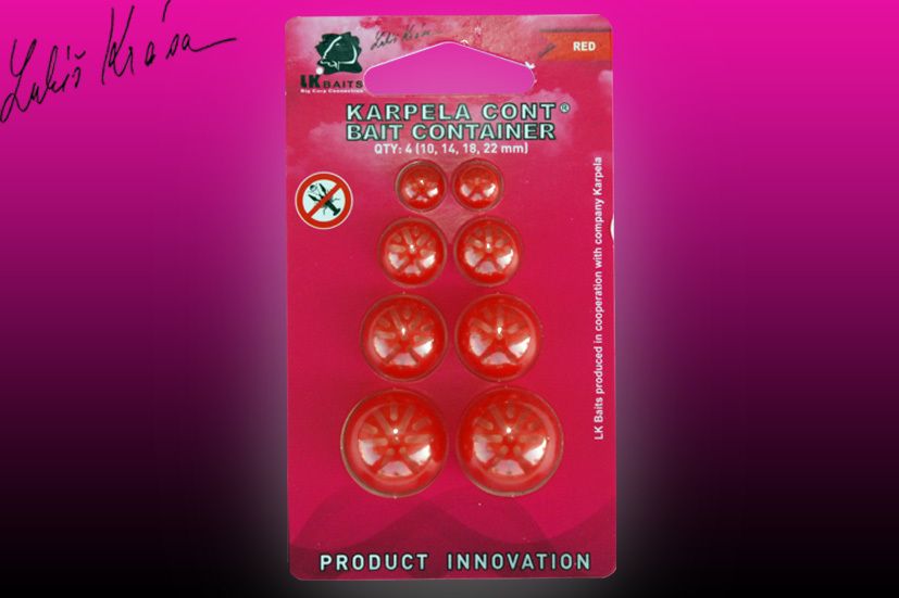 Naprosto inovativní produkt ve světě rybařiny, který vznikl ve spolupráci LK Baits – Lukáš Krása a Karpela Cont. Díky tomuto produktu můžete nastražit jakoukoliv nástrahu dle Vaší fantasie. Ať už do našeho kontejneru dáte plovoucí pastu, konopí, krmítkový mix, červy nebo patentky, vždy budete mít neodolatelnou nástrahu. Máte problém s raky nebo želvami? Nebo bílou rybou a nebo dokonce sumečky americkými? Žádný problém! S Karpela Cont LK Baits máte po problémech. Už se Vám nikdy nestane, že jste probděli celou noc bez záběru a ráno jste stáhli návazec bez nástrahy.